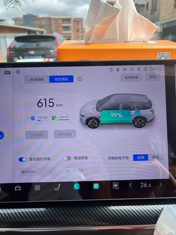 4、油耗,本人高速需求现在很少,长途更少,基本上用一滴油都是罪过的状态,加了100块油,一直没用过。油车转电车,基本上充满电,我动态续航在270-310,这个我估计是看头一天的电耗来算的。
