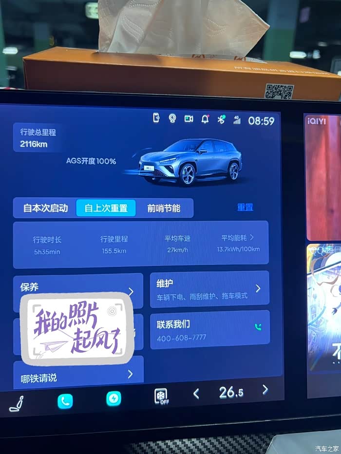 5.、配置带来的舒适度,车机够用,不卡,流畅的很语音交互功能,可以,大多数可以叫哪吒完成冰箱,给力,但是有个问题,停车锁车老是要我手动重新开始,打开了下车开启功能彩电,有这个功能后,我儿子天天车上看动画,加上哪吒的音质,影院效果。