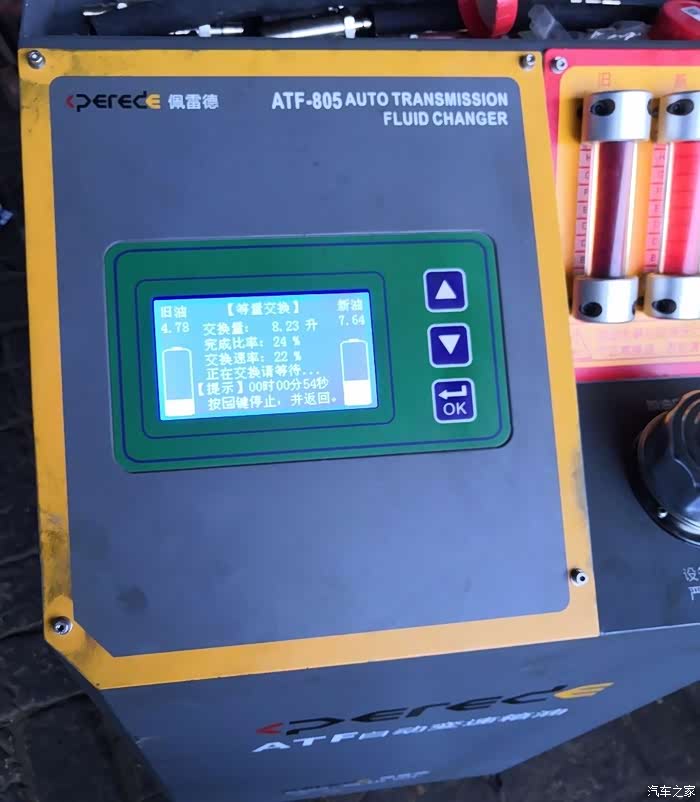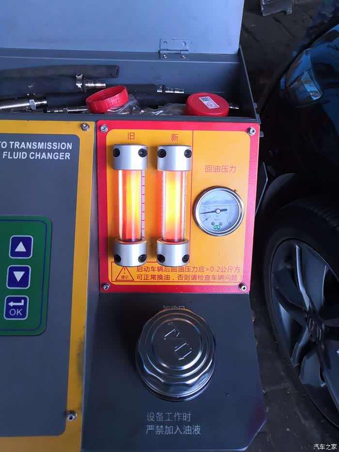 快循环完时新油旧油颜色很接近了,变速箱里的油不太脏