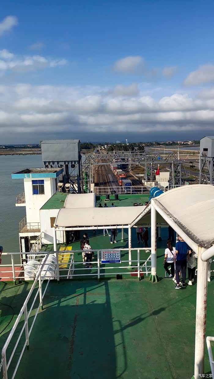 D3:下午,穿上风景还是很不错,隔壁这条船就是我们这种船的外观,侧面开口上顶层甲板。上传的时候注意是乘客分离,车上只留司机。