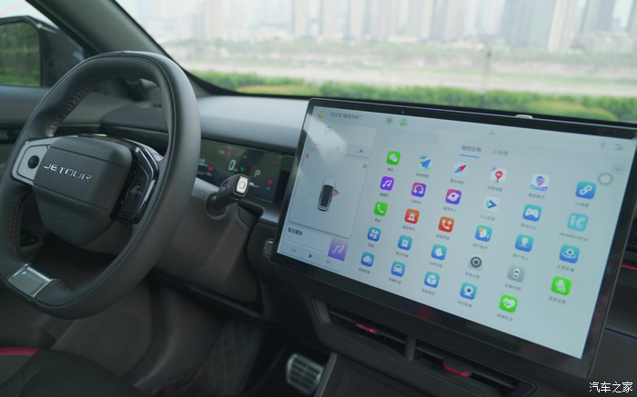 坐进捷途大圣车内,内饰设计时尚动感,整体造型可圈可点。方向盘造型设计十分前卫个性,采用皮质材质,气质前卫。使用极少的物理按键,大量的操作和功能集成在了中控屏上;取消了排挡杆,以怀挡代替,既节省空间,也体现便捷。