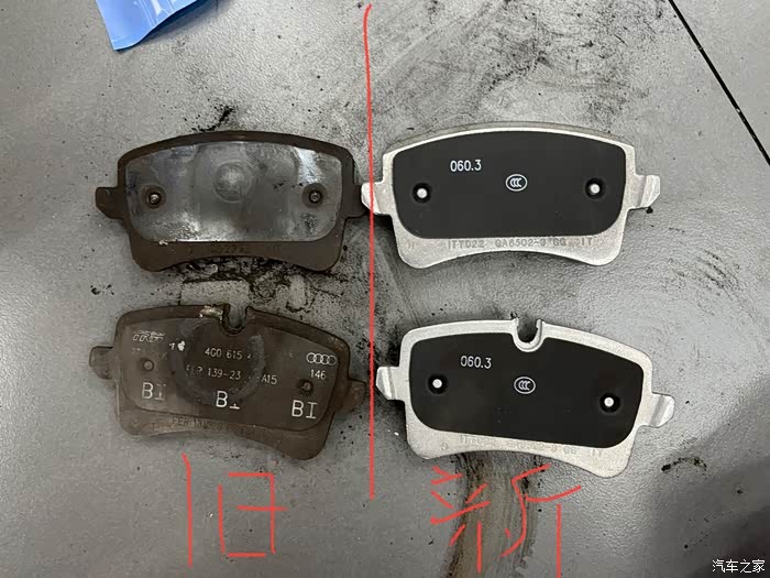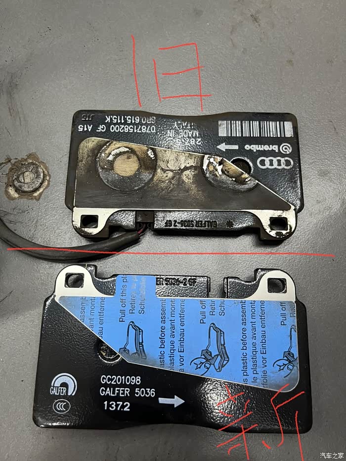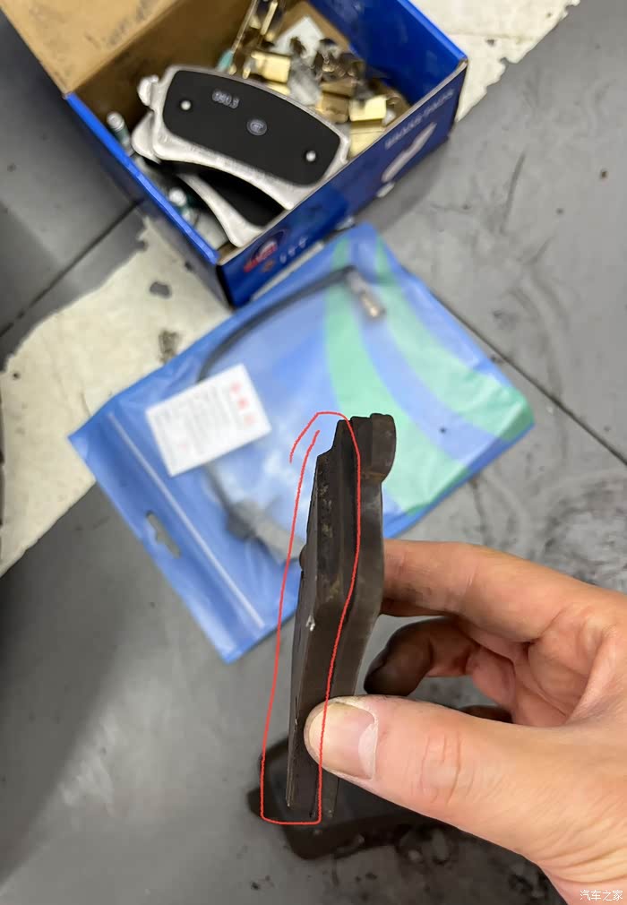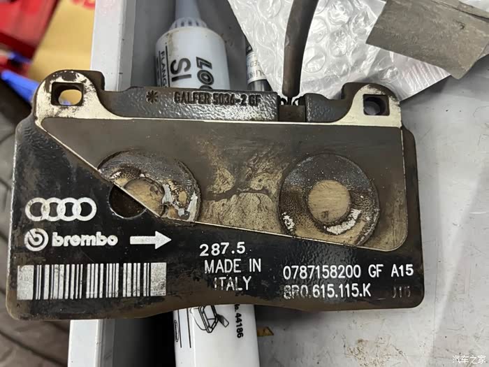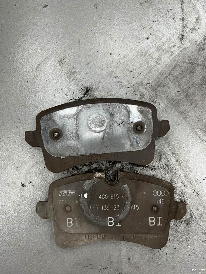 前片 注意是贴近刹车盘内测的那块才是刹车片的实际厚度 当时从肉眼判断前面已经挺薄了 后面的事实也证明确实如此