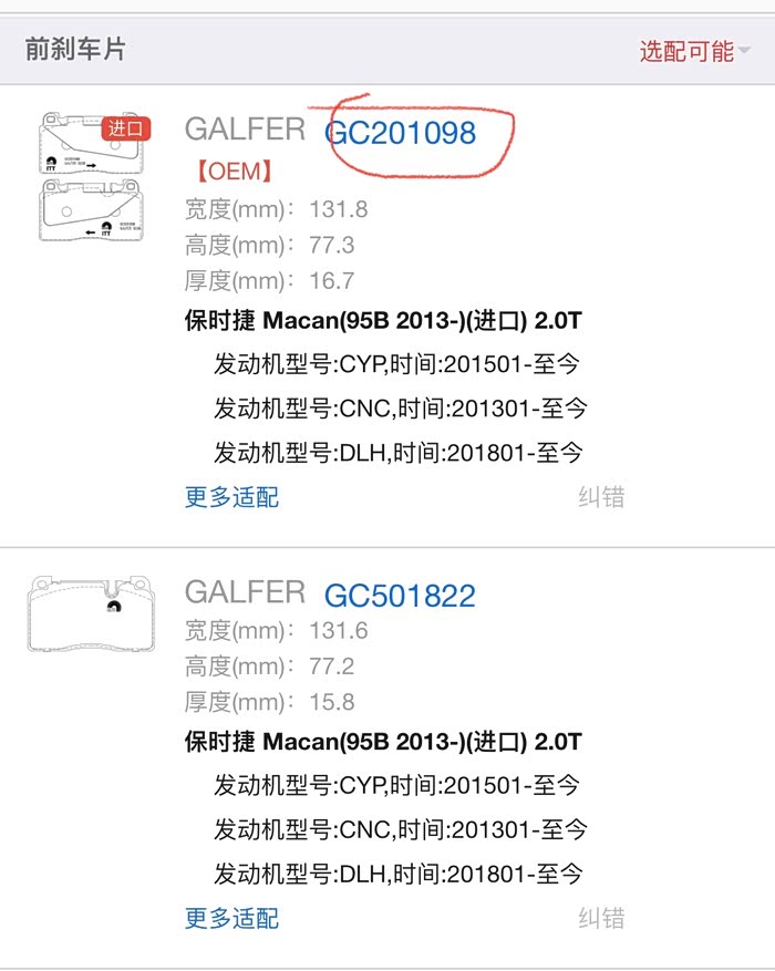就在我决定最终选择Brembo的时候,临时起意去问了下4S店的朋友,得知我们macan用的竟然是一个叫做噶尔法GALFER的品牌,然后很顺利的在东哥网站找到这家专卖店,这里要表扬下他们家的客服,态度超级好 超级耐心,再结合我自己去GALFER官网查询的资料,最终选定选择GALFER的刹车片。下面发一些我查到的资料供大家参考