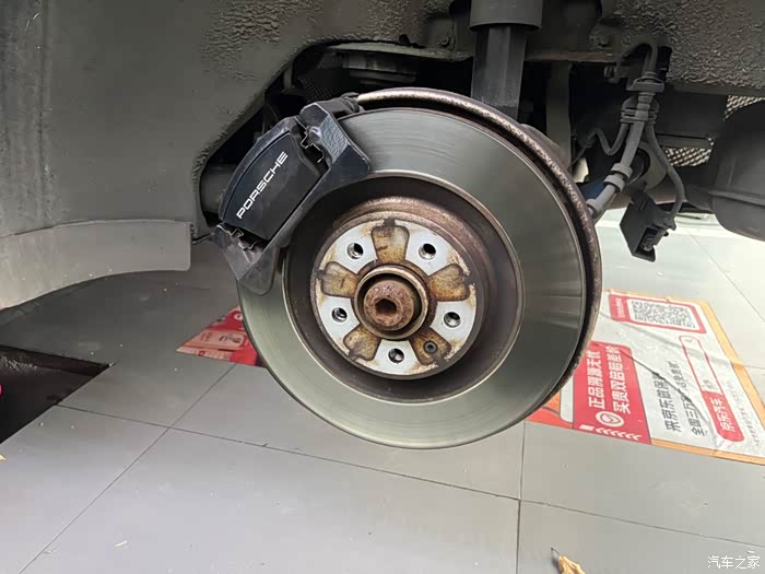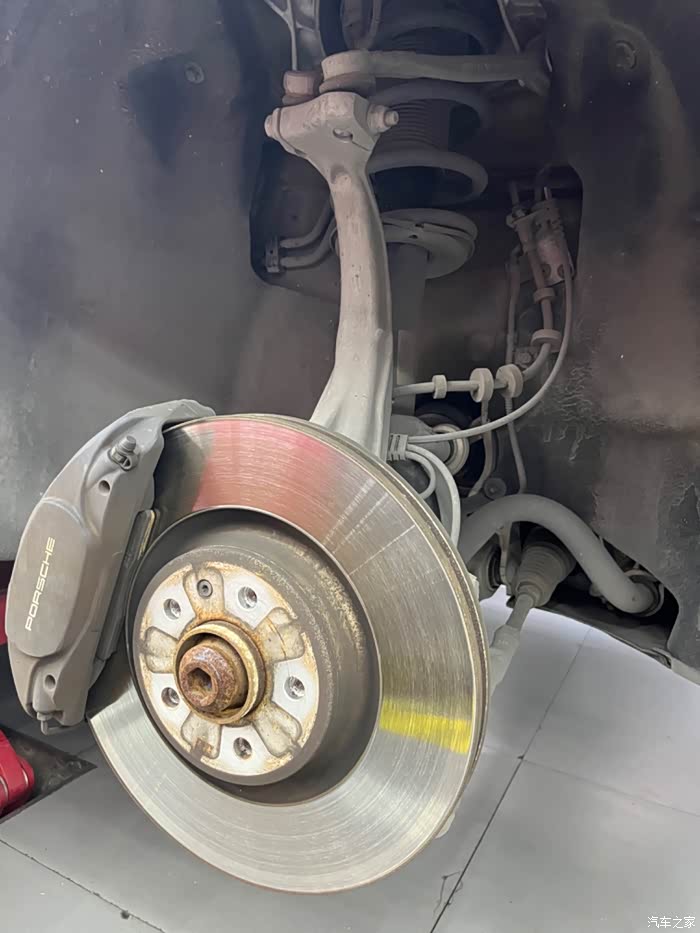 今年2023年3月份的某一天车子发动后报警灯亮了,显示内容为三部分“磨损极限” “更换制动衬片” “继续行驶”,第一感觉是描述非常清楚,就是提示车主需要换刹车片了,但是可以继续行驶。因为报警内容是不知道前片后片的,于是自己在车库用肉眼检查了刹车片,但一时半会也吃不准是否需要立即更换,上网查了点资料,原来macan的报警线设置的比较保守,网上竟然有车主2w公里就开始报警了,4w公里算平均水平吧,而大哥卡宴的刹车片开6w公里都没有问题