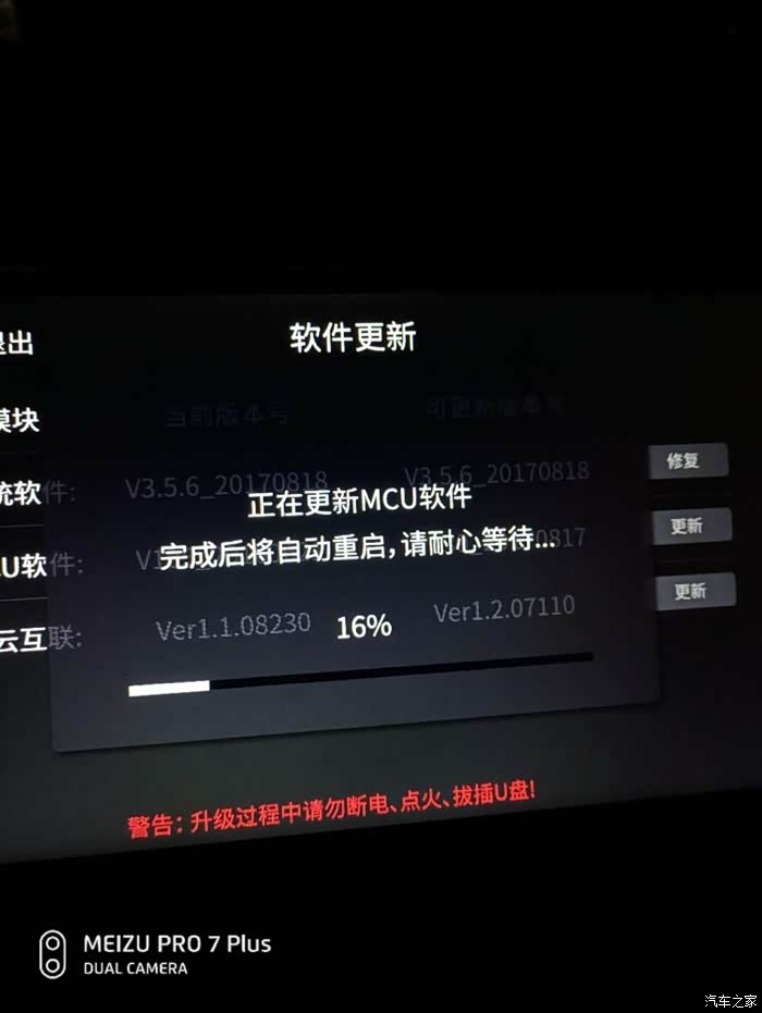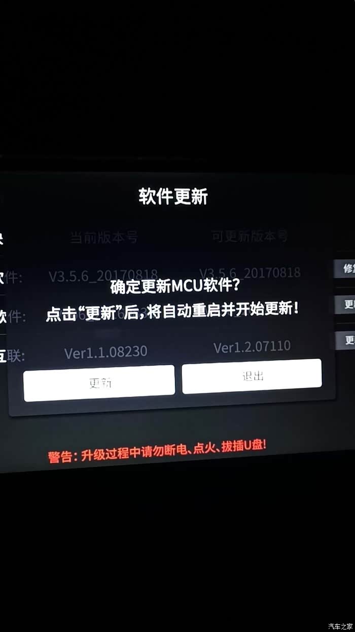 那么怎么知道我的车机能不能升这个包呢?很简单,按上面方法,将升级U盘放入车内USB上,开机,等几秒