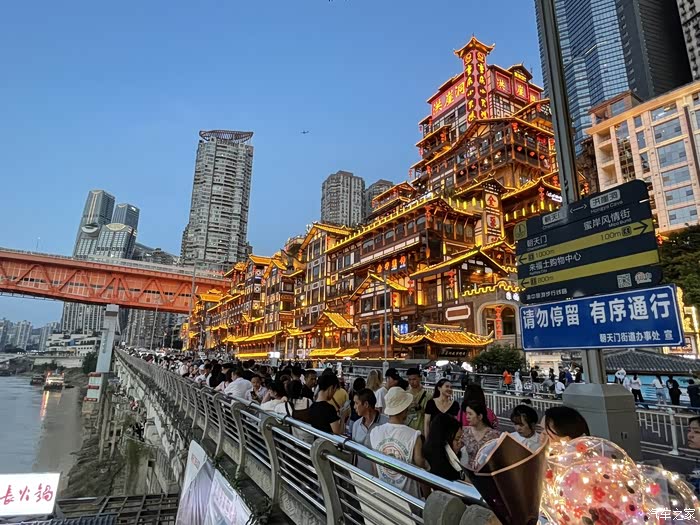 昨日从秭归驱车到达山城重庆,入住解放碑商圈,吃完一顿火锅之后,开始逛街,随着密集人流抵达洪崖洞景区,人头攒动,熙熙攘攘,热闹非凡,嘉陵江两岸的夜景不错,打卡了!