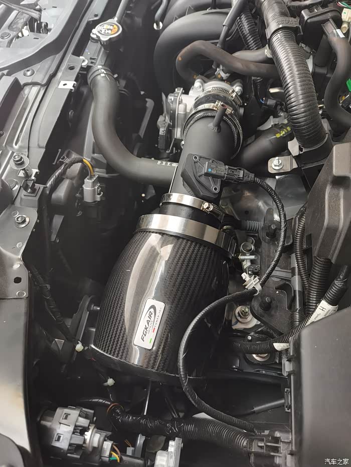 接下来的是动力改装部分,我先说一下这种进气套件,在理论上是可以提升动力的,但是得看你的使用场景和驾驶习惯。我个人用了以后的感觉是不太理想的(毕竟不是天天激情驾驶),管径大而短,进气口也大,进气温度高,负压低,低转速行驶扭矩损失比较大,油耗也高。所以装了几天就拆下来了。