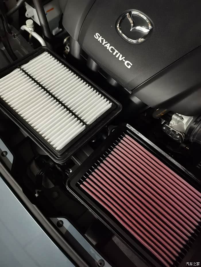 左边白色的是原厂,右边的是KN空气滤网,清洗后可以循环使用