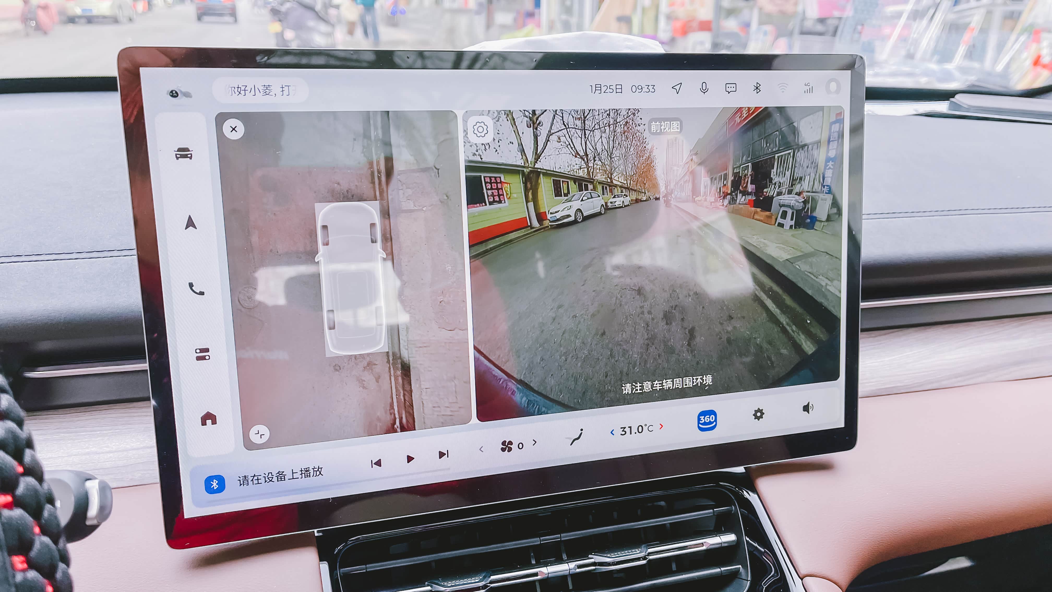 车机是一个15.6寸的大屏,这个屏现在很主流,清晰度也很高,倒车影像很清晰,车这么大盲区非常重要,所以有这个全景影像的话,可以避免周边的盲区。