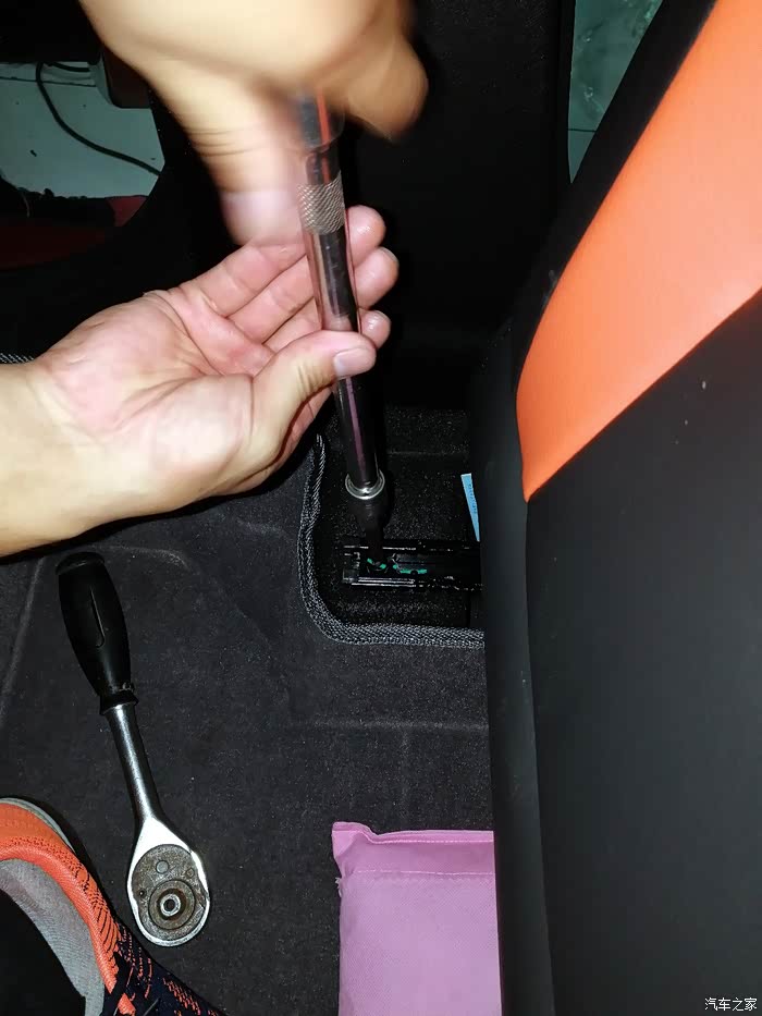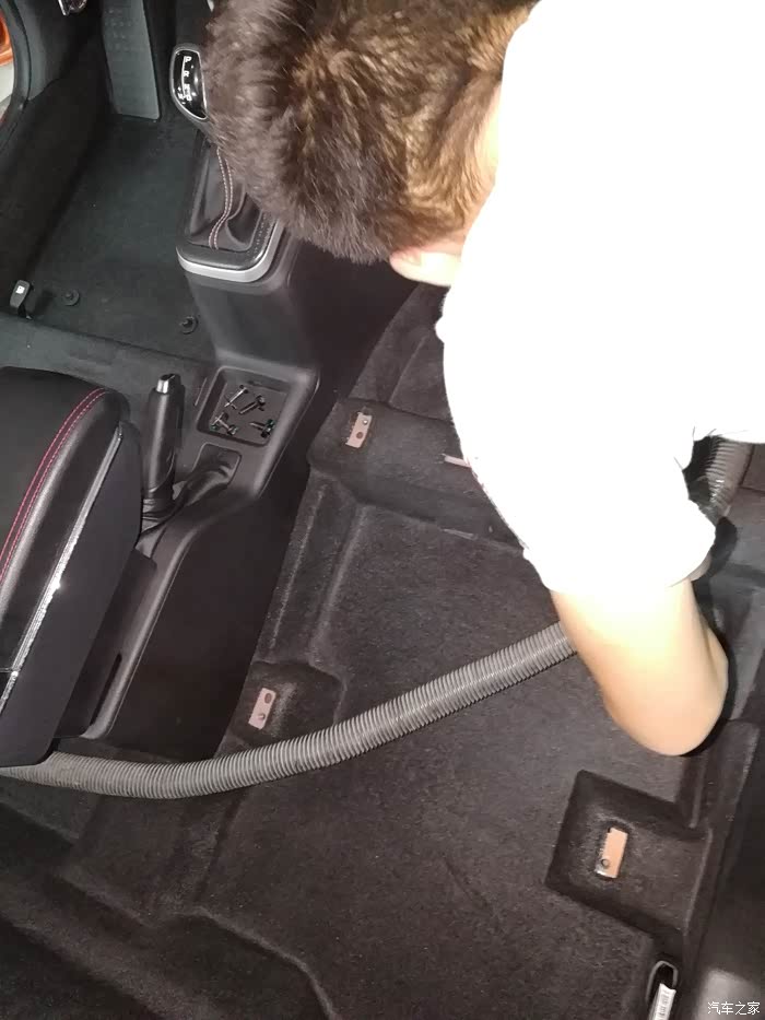 后座的脚垫比较简单没有螺丝直接扣下路来就行