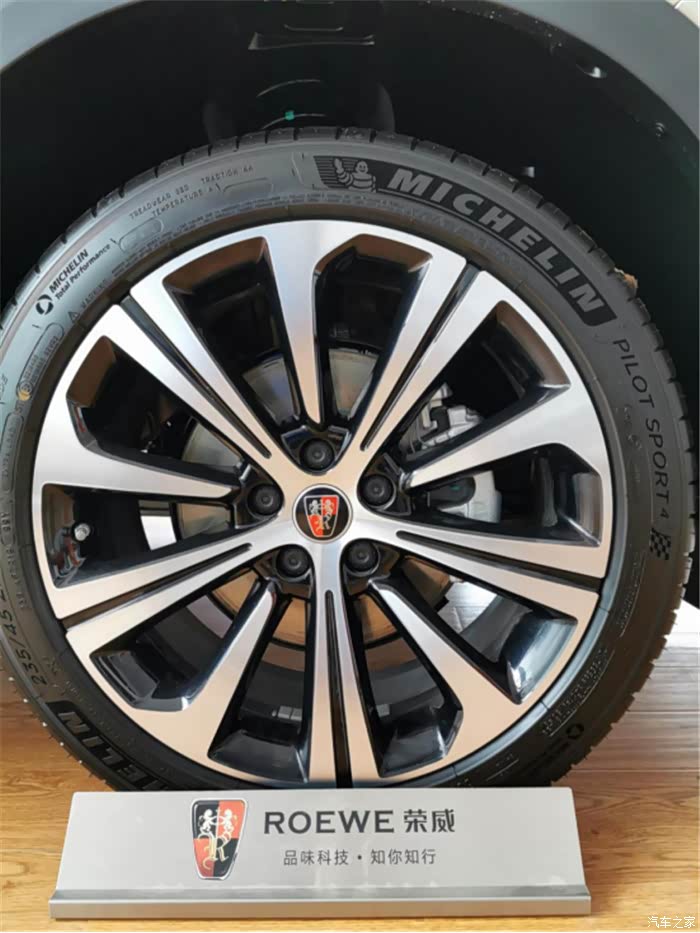 荣威RX5 eMAX使用的是米其林“PILOT SPORT 4”的轮胎,国际大牌还是非常值得信赖的,看上去就非常的厚实沉稳,相信在不同道路上都会有着不俗的表现