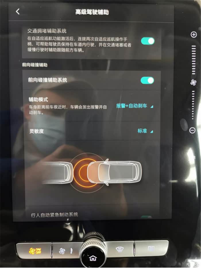 位于中控屏幕的下方的功能按键可以调节车内的空调,会显示在中控屏幕中,简单方便