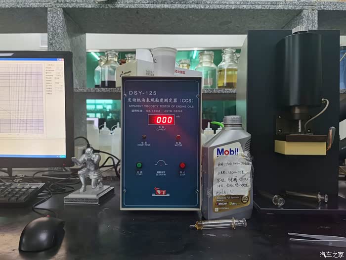 ,继续废油检测。通过检测用过的废机油,可以了解机油的衰减情况和性能余量,从而为不同的发动机定制一个科学的换油周期,也可以从一些数据判断发动机是否有燃油稀释、过度磨损等问题。