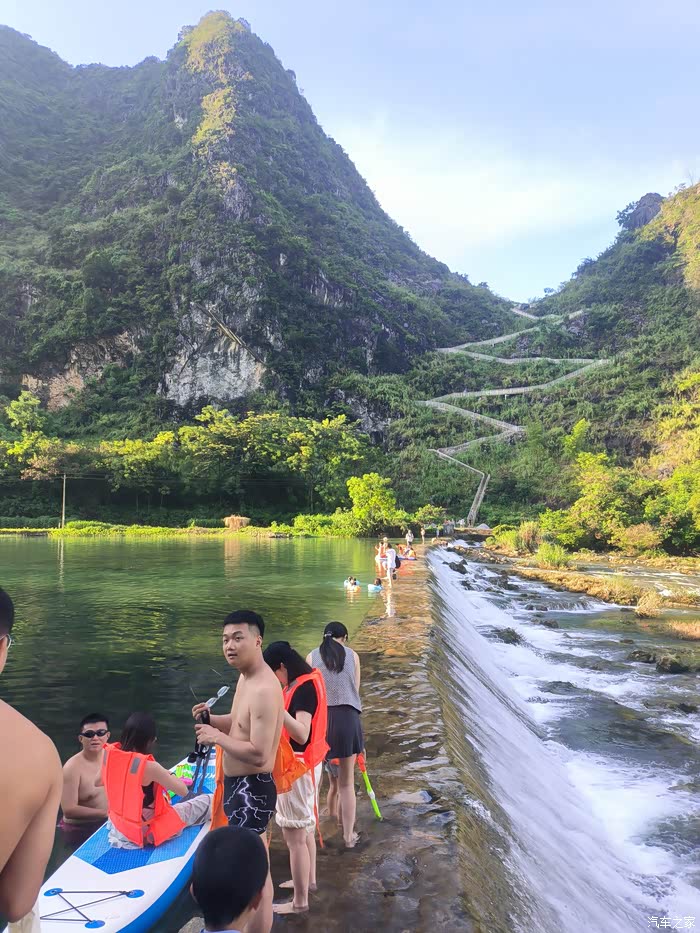 吞榜天窗再开几分钟就到了本次我最推荐的一个天窗——九灵天窗。九灵天窗水质无敌。有深水区浅水区,对游客玩水很友好。水边有遮阴的地方。名气不大,人比吞榜天窗少得多。真的是玩水的天花板级别。只有一个缺点就是,因为是地下水的出口,属于源头水了,所以水温较低。所以就算岸上是40多度的气候。水里面体感温度只有几度。。玩几分钟就要起来暖和一下身子。但是对于炎炎夏日下的我们来说。岸上岸下冰火两重天的温度也是一种刺激的体验。所以如果不怕水冷的车友们,直接来这里就对了。