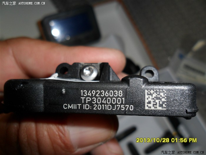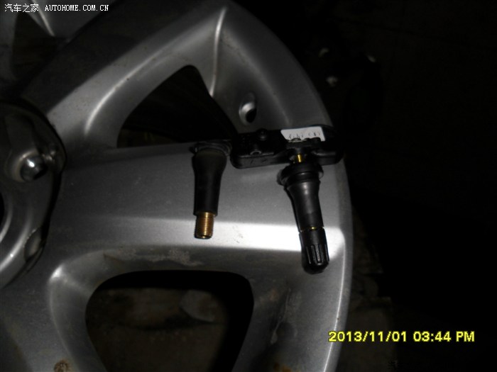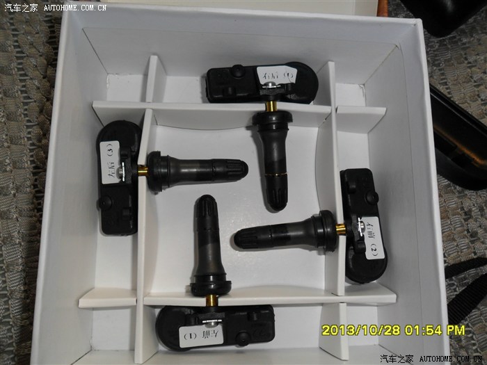 新领驭标配没有胎压显示等,因为经常跑长途,每次上高速前都习惯性检查轮胎,可是在高速上还是有两次轮胎扎钉子的经历,一次在跑长途的路上,在服务区休息检查轮胎时发现轮胎上一个螺丝钉,看轮胎刚刚缺一点气,天已经黑了还一直在下雨,离家还有70多公里,跑---心惊胆战开到家,第二天早晨看轮胎一点气也没有了,想想有点后怕,还有一次在泰安也是带着钉子跑回来的,有这两次的经历,想改仪表盘加轮胎监测,在论坛看了很长时间,发现有的车友改完故障灯亮,改装的费用也不低,无意间在别的论坛看到有无线胎温胎压监测系统,安装非常简单,不用车的电,用电池,有时间就在TB上找,找的我眼花缭乱,最后决定一个品牌,讨价还价后的结果就赠了个充气泵,果断拍下,收到后因为忙放车里有几天了,今天下雨下午有时间找个补胎店装上,下面是安装时拍的照片。