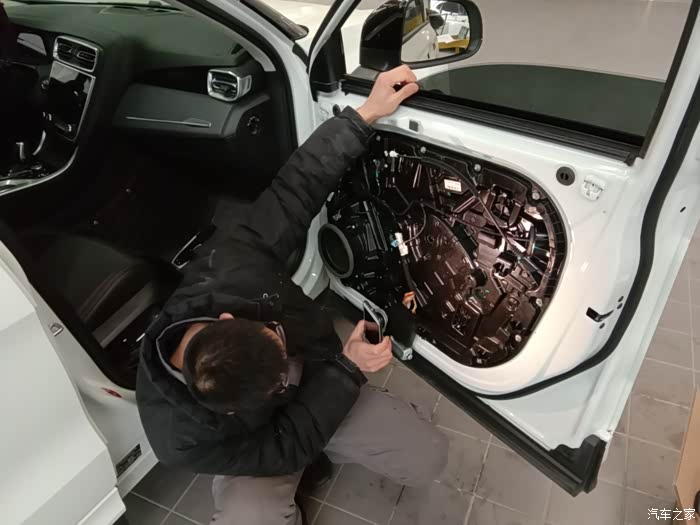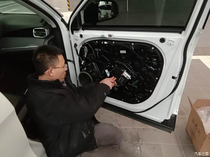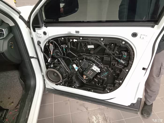 打开了车门,线束很整齐,音响,各位老铁看到了么?