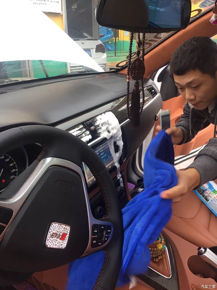 真皮方向盘 座椅,鹿茸皮的顶棚,由于是全景天窗所以没改星空顶。