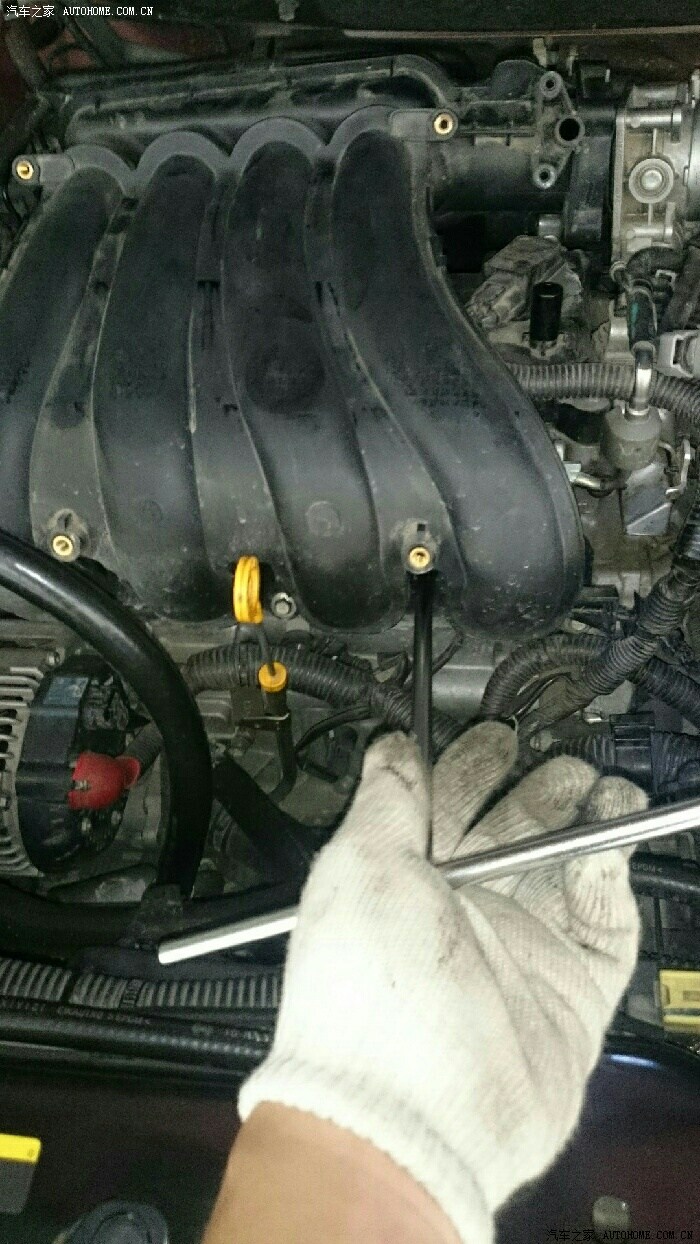 前面五个进气岐管固定螺丝,拆掉,10mm套筒