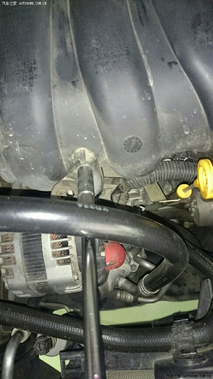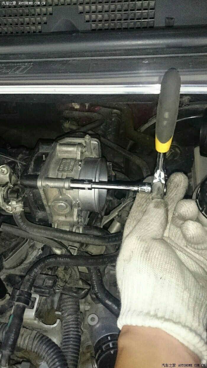 现在拆进气岐管,右后侧也就是节气门后面有一个固定螺丝,10mm套筒搞定
