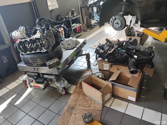 这是托底的部分,可以看到机油滤芯都变形了,可见伤的不轻