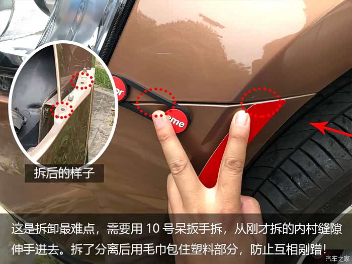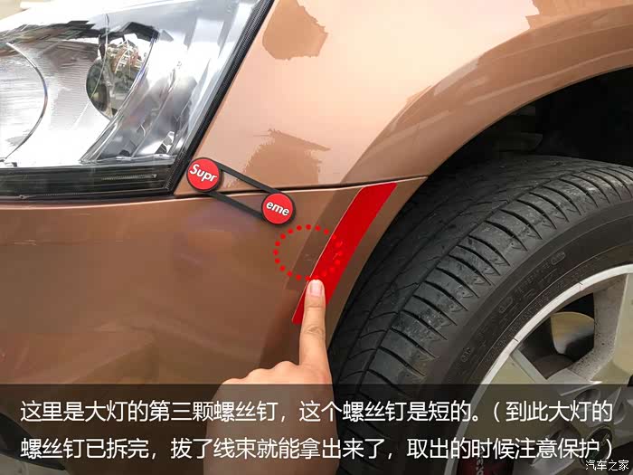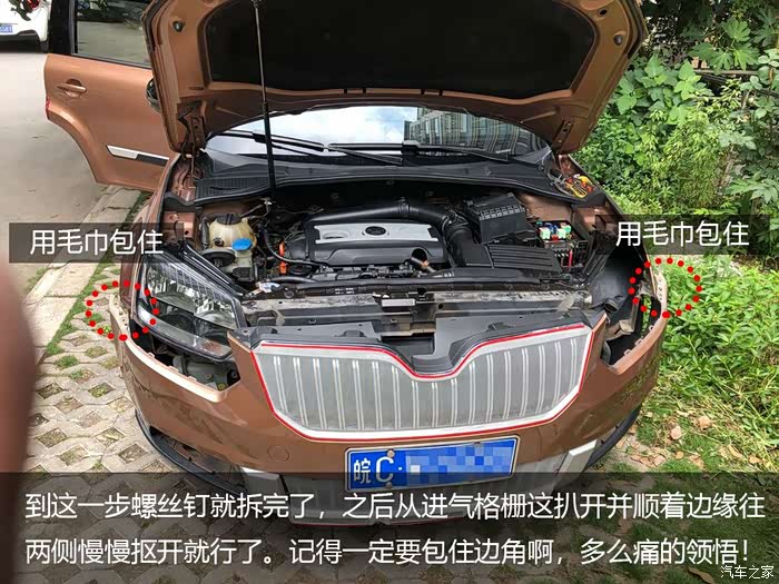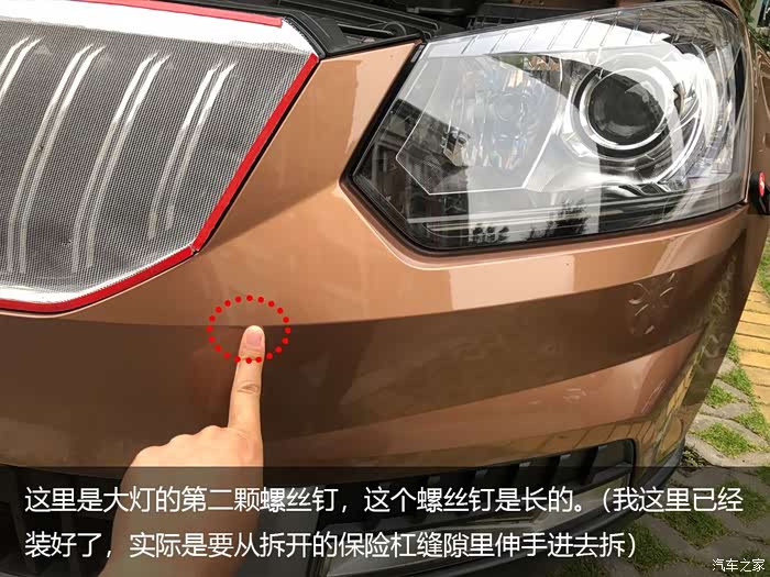 看别人换大灯帖子都是要把前杠完全拆下来,我这个不需要完全拆下,这个套路是我在4S店偷师学来的(我车索赔过大灯)。由于我在换灯的时候是一个人弄的,没有拍照,照片都是换好的时候补的,希望各位车友能看懂,如果看不明白可以跟帖,我尽力帮助!写的不好别喷就行……
