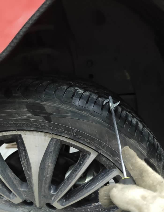 轮胎花纹里的石子要用钩子挑出来,磨损严重的话,通过轮胎上的磨损标记判断是否需要更换。