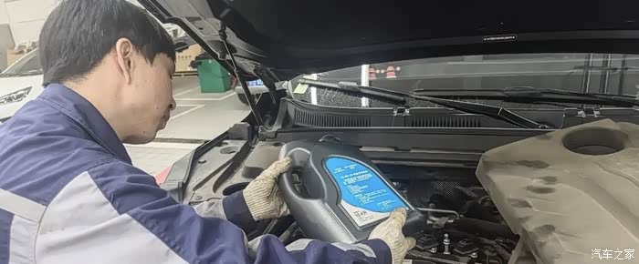 再从发动机顶部的加注口倒入新机油。记得查看车辆手册,加对应标号的机油