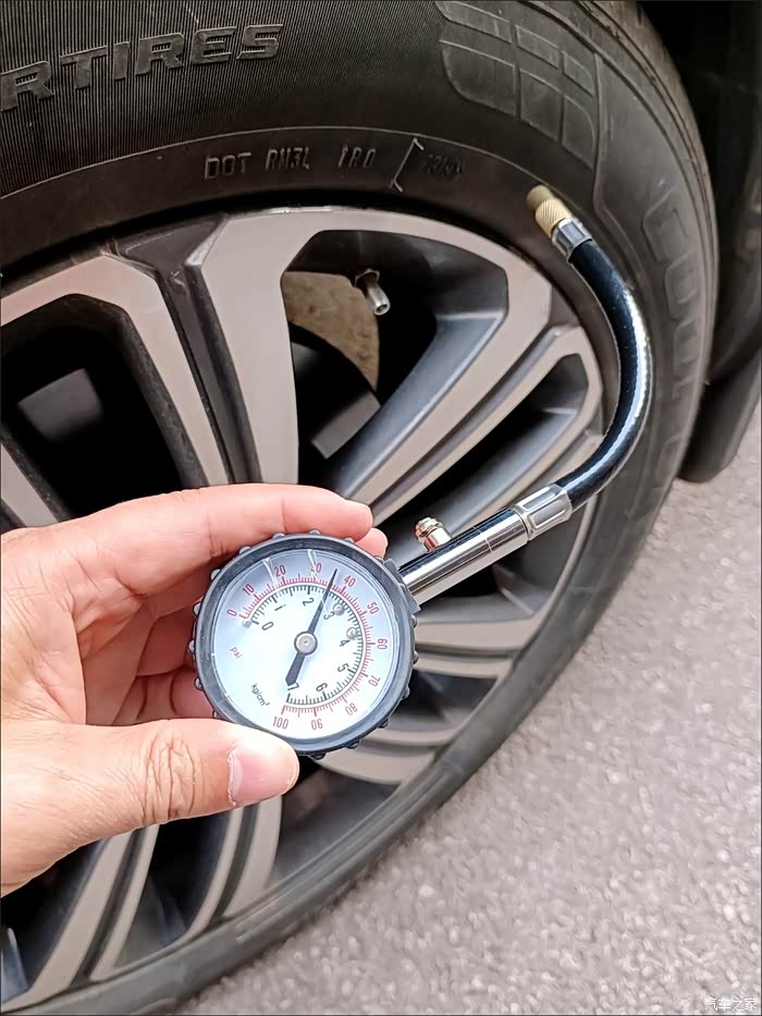 2. 检查轮胎:用胎压表测胎压,正常范围在2.2-2.5bar。