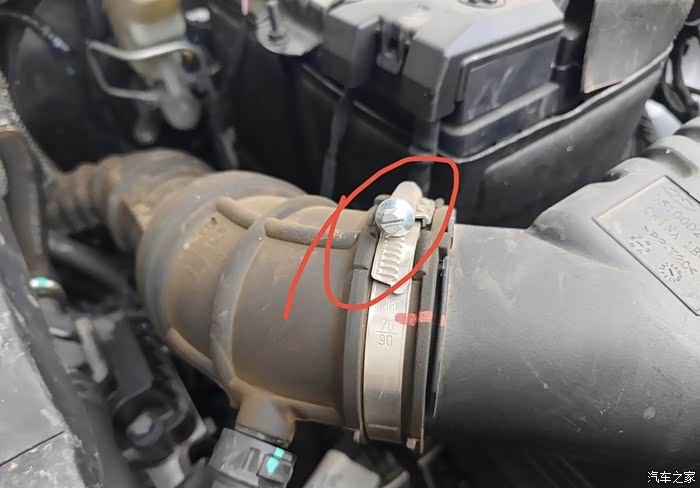 安装上新的空气滤芯,盖上盖子,拧上螺丝,把那个管箍的螺丝也拧紧