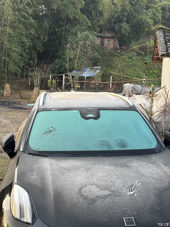 09第一次“受冻”,零度的气温,一早车身上结了一层霜。