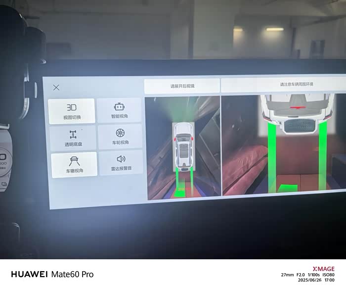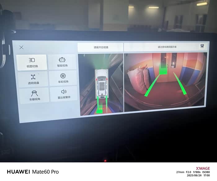 特别是车辙视角,跟车轮视角,跟正后方的那个摄像头特别给力,车辙视角能够在打方向