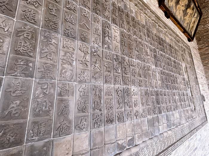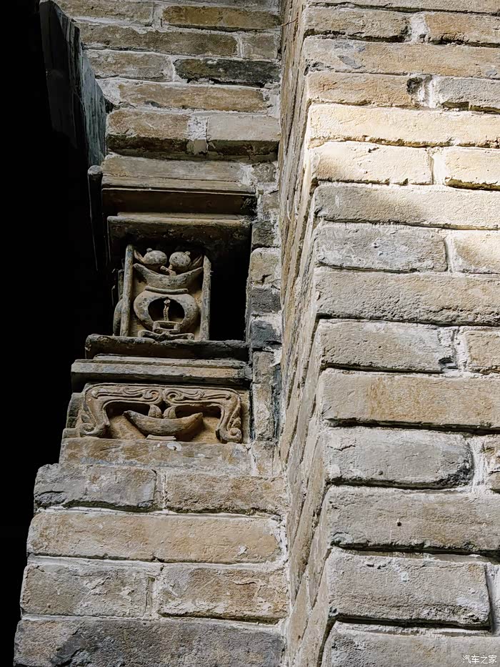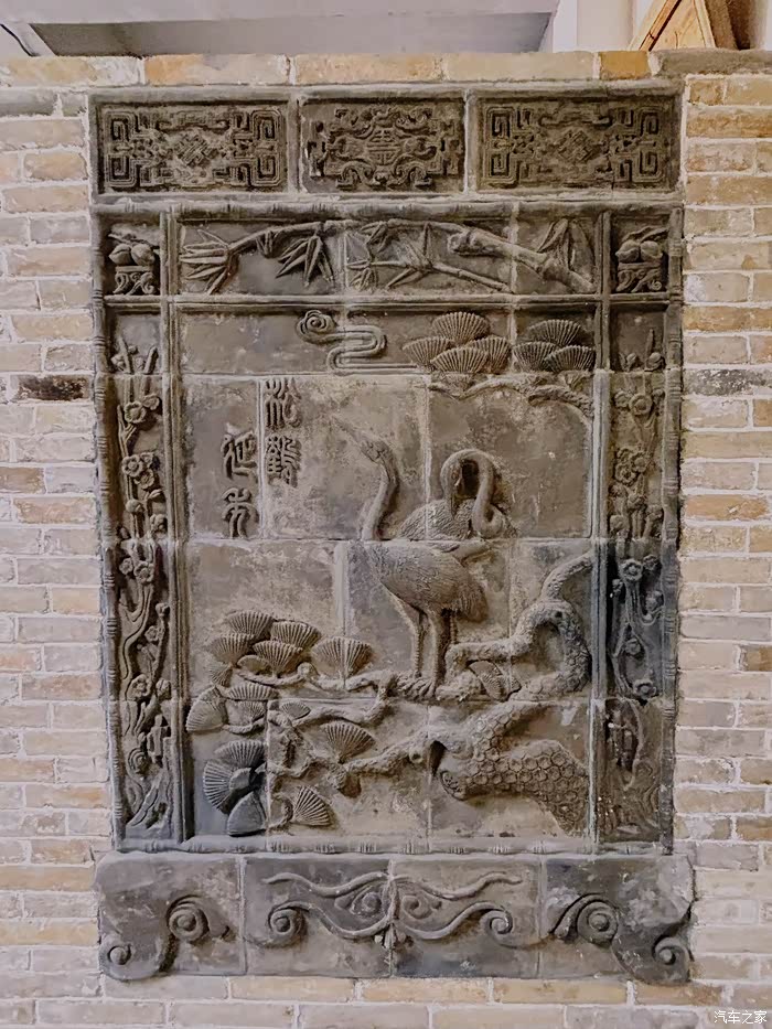 石砖都是现代或者近代的,上面颜色较重有造型文字的石砖是老物件,通过再次的拼接和贴合再次展现出来。