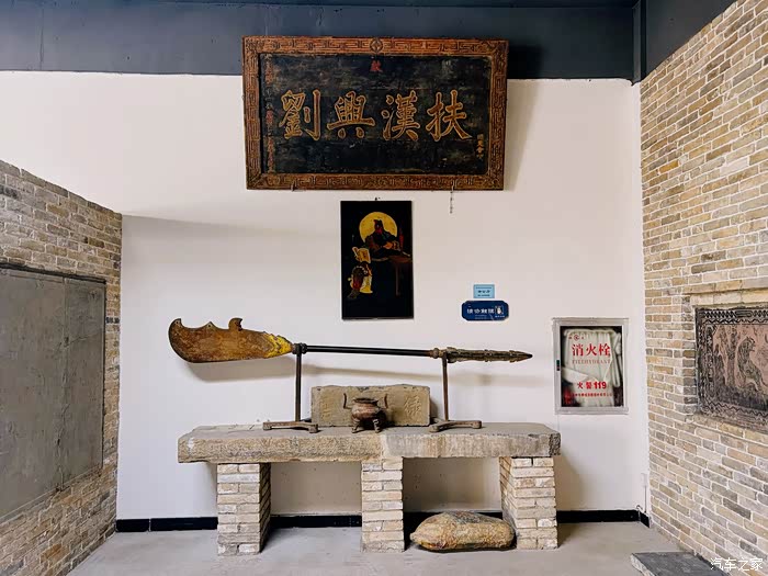 扶汉兴刘,匡扶汉室的刘备,下面是张飞的画像和关羽的大刀。桃园三结义的哥仨情谊真的是流传古今,不像现在很多被利益所左右。