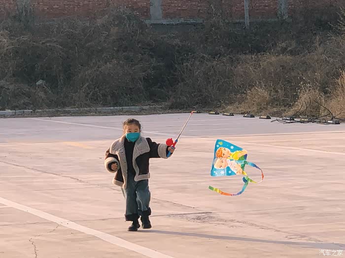 正好车上带有过年玩的风筝,停车场也没车,就让米粒儿玩一会。她最喜欢的艾莎公主。