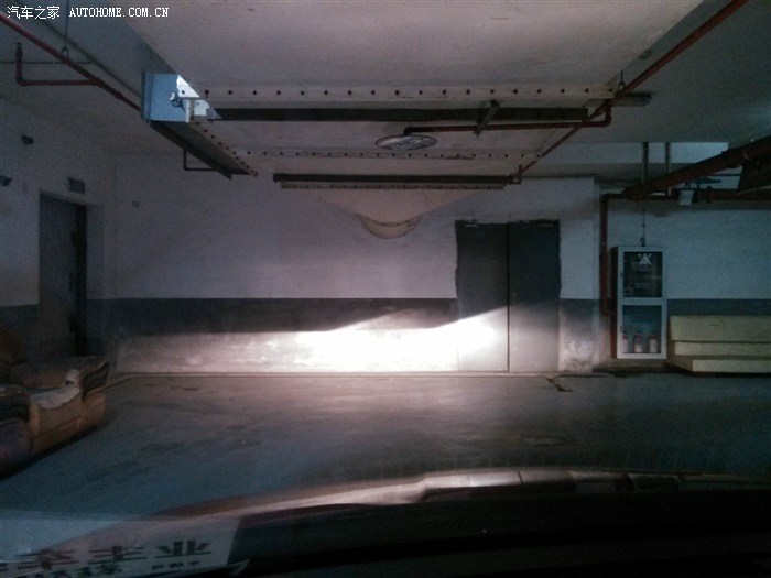 这是近光灯的效果,比原来稍微提高些亮度,但好像不是特别明显,灯光还是偏黄的(没有原来那么黄,可能色温高比原来了些)