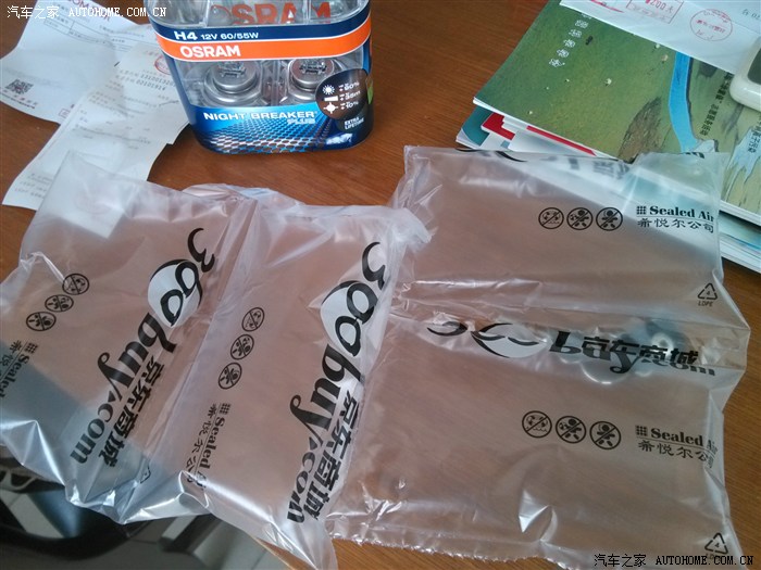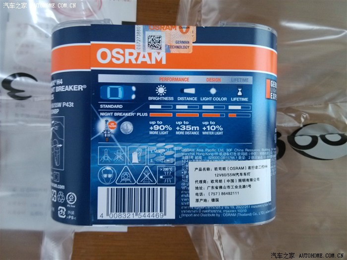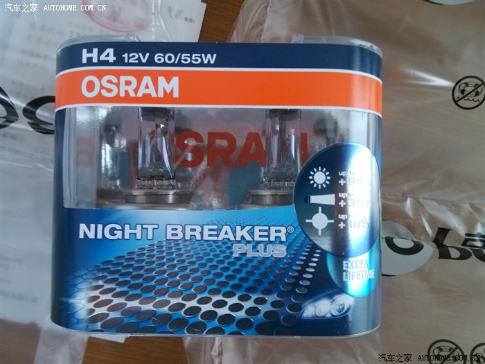 08款骐达开了5年不到,左侧大灯的近光灯不亮了,远光灯好的(大灯开关常年AUTO,懒得开关麻烦),赶紧换灯泡,否则要影响行车安全滴。原车欧司朗64193 12V 60/55WH4,决定换个欧司朗夜行者2代试试,顺便解决原车灯暗的问题。X宝上灯多的是,没敢买,怕假货,还是到某东上去买,158元一对带发票,貌似比较正宗。