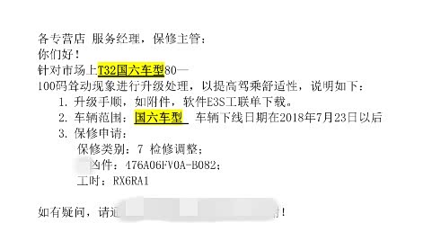 从销售方面了解到,对在线生产和中转库的车辆,以及在4S店的车辆,都已经升级新的程序软件,后期销售的车辆不会出现这个问题了。