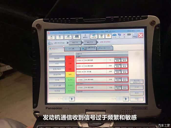ECM及相关模块的通信出现异常时的电脑显示