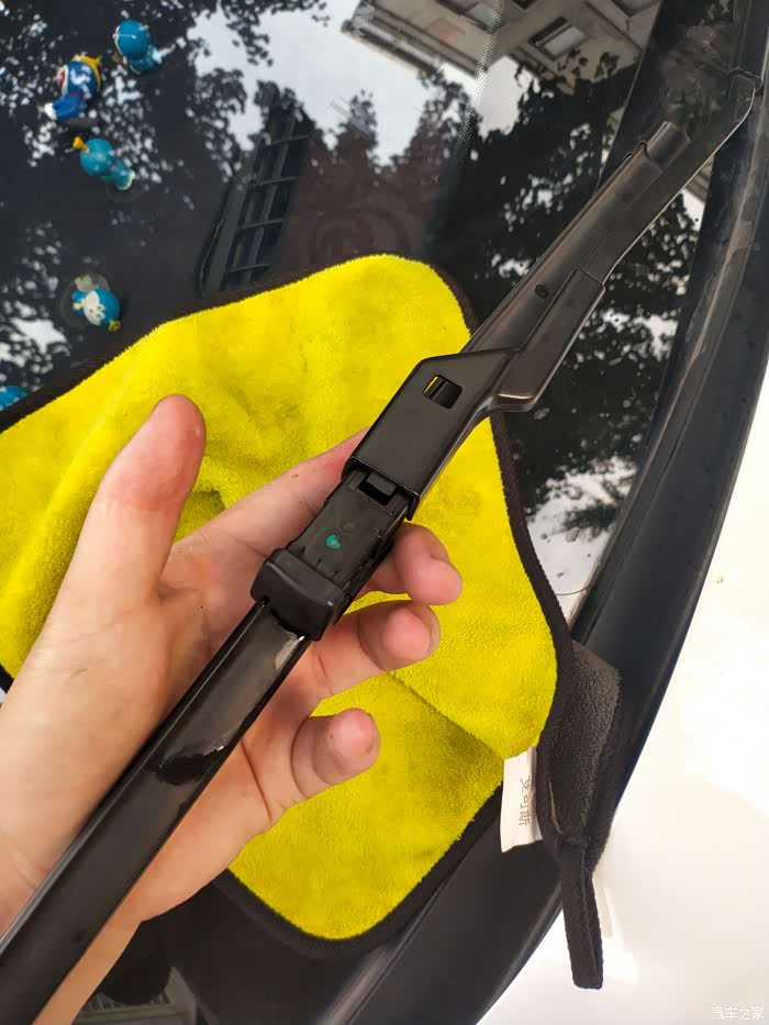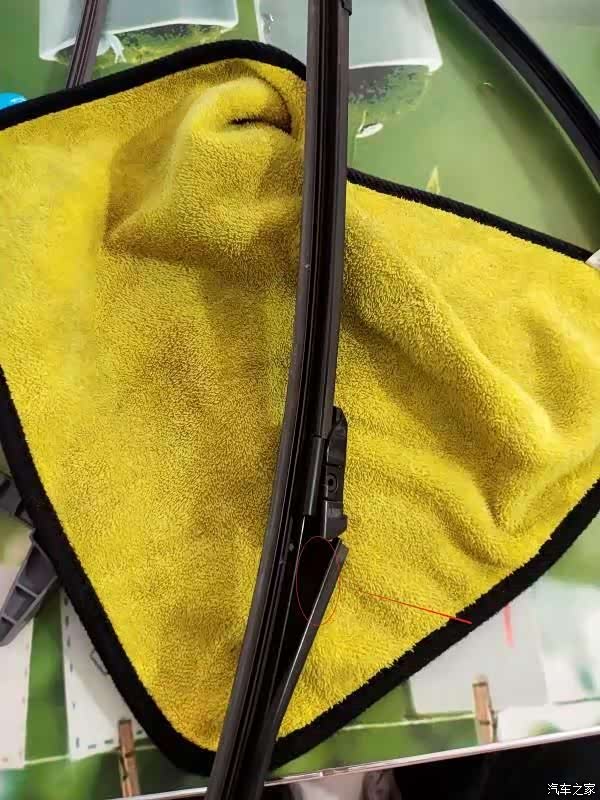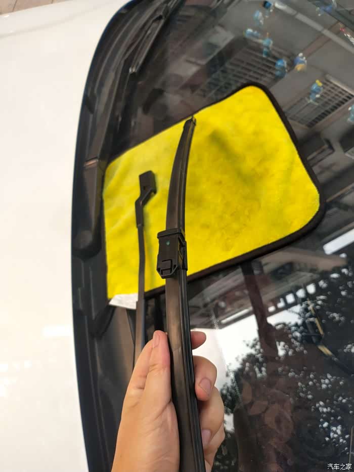 细心的车友发现了,全程操作的时候,雨刮臂我垫了一块洗车布,,主要为了避免误操作,不小心将雨刮臂打到挡风玻璃的一种保护措施。这个是一定要垫的,不然会因小失大,得不偿失。