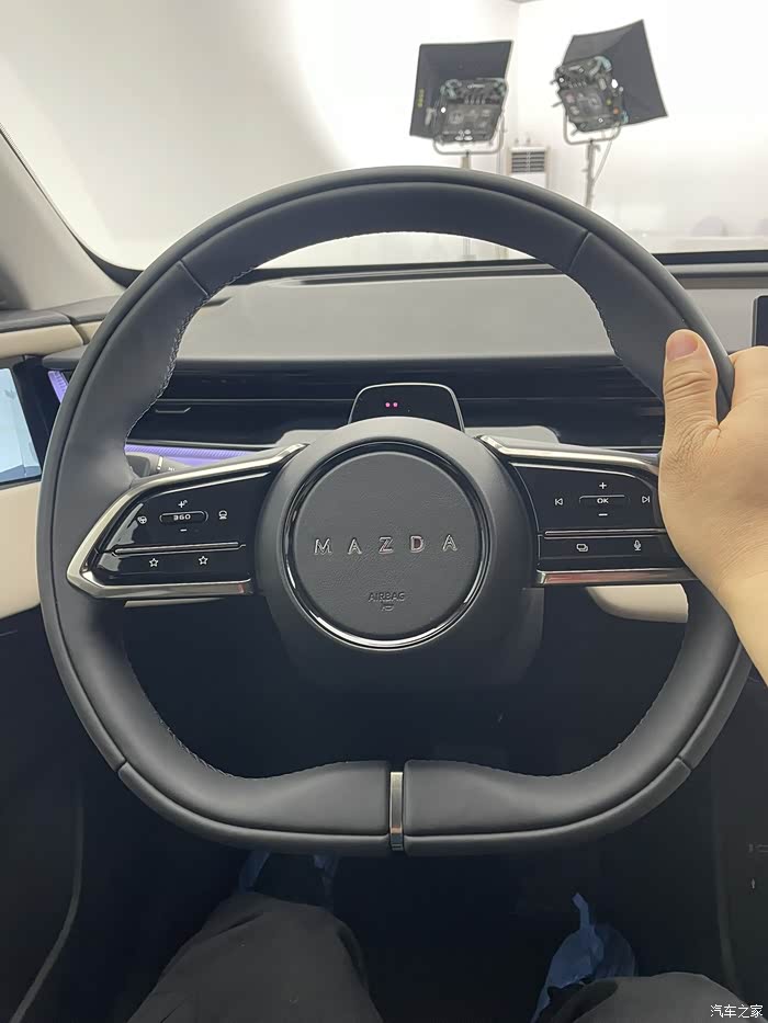 现在不会再有人吐槽马自达屏小了吧,26.45英寸,5k一体式大屏。整车内饰目前看到有白色和紫色。