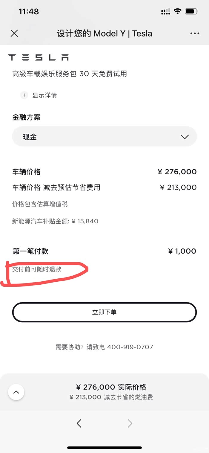 特斯拉订单细节变化:交付前随时可退