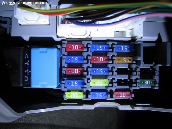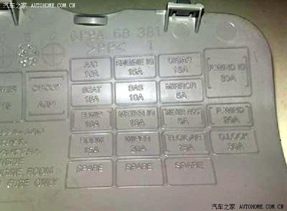 提示:两个保险丝盒内都有3只备用的,引擎盖内的备用分别是:10A\15A\20A;