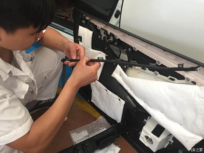 准备一根1.2米左右的电线(不要尝试走别的地方接电了)老老实实走手套箱吧,我们把门板上的电线研究了1个小时,最后还是放弃了