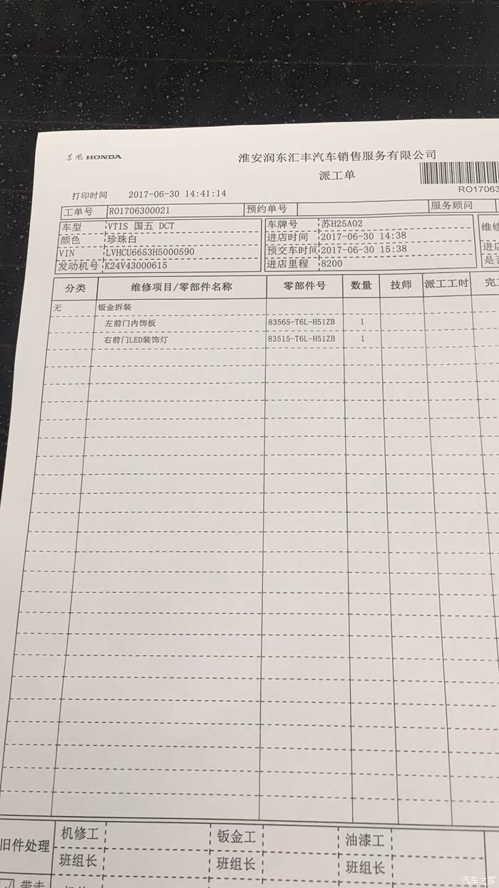 拿着派工单,立马冲进售后经理的办公室,直接点名里面最靠谱的大师傅来开工,经过等了15分钟的时候,大师傅终于答应把手头的事交给另外一个人过来帮我安装了。