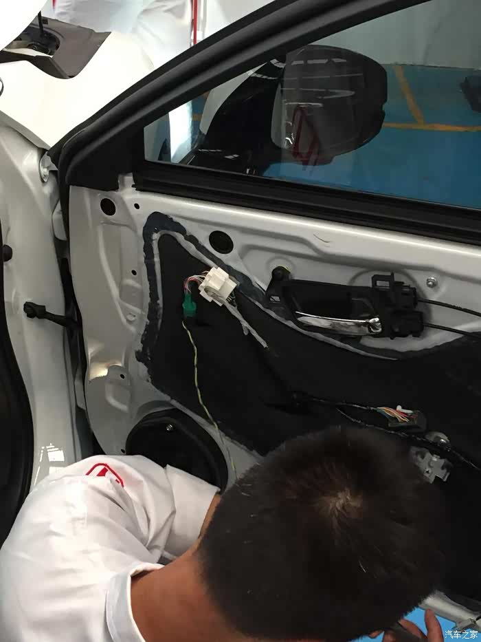 这个地方我就不得不喷一下东本了,你TM在逗我?原厂的装饰带,你丫为什么不给我们留一个接口?哪怕来一个转接口也好啊,车门钣金上还有一个孔可以固定这个接口,所以说原始设计肯定是有一根线走过来的,你丫现在就懒到这个程度了?