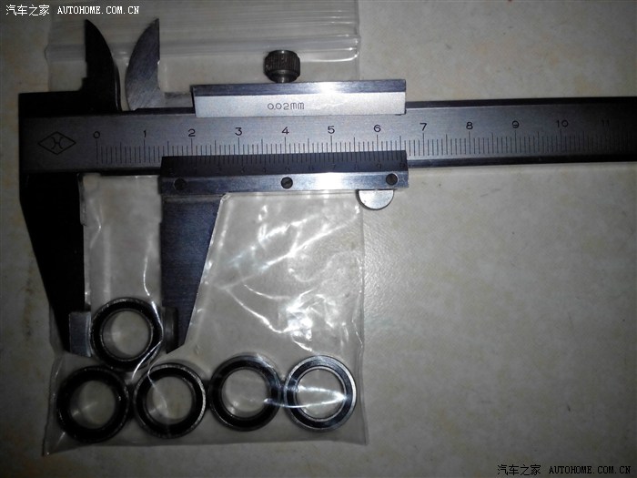 图中并排放置了原装轴套和叠放的5个小轴承,直径和长度一致,并附上了补的锁紧螺母。