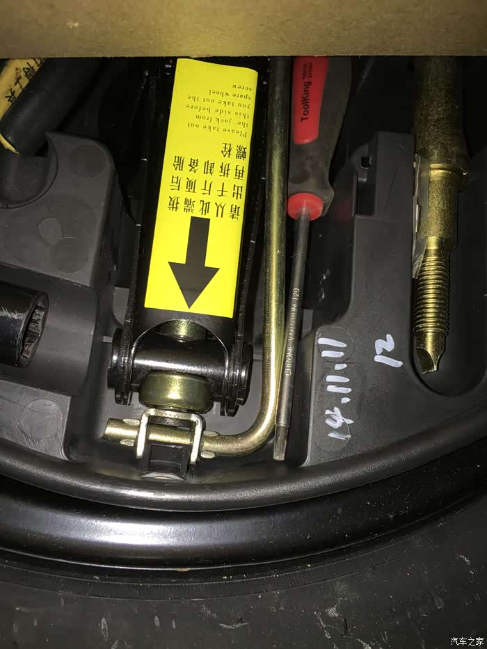 在正式开始更换前,请确保你已经准备好了如下工具:随车工具的千斤顶、拧轮胎螺丝的套筒、拆挡泥板的内五花起子、平口起子、尖子钳、钳子等工具。虽然准备了扳手,其他工具,但是用不到。