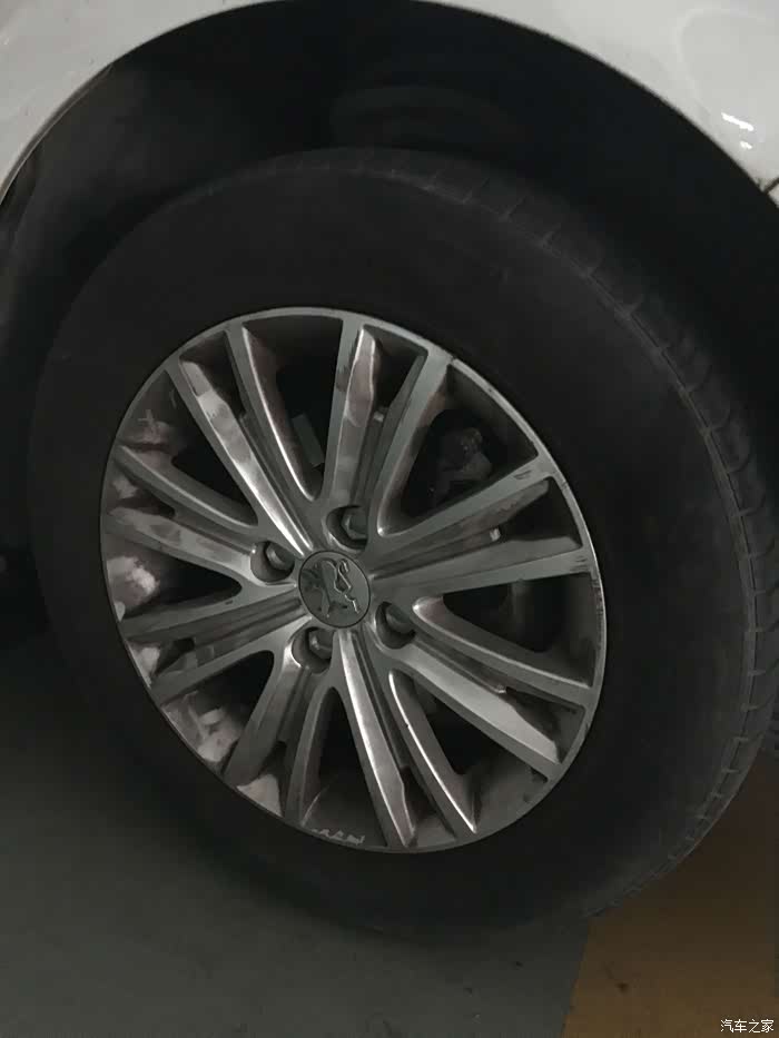 所以首先要拆右前轮。正确拆轮胎螺丝如上图。标致301是只有4颗螺丝。