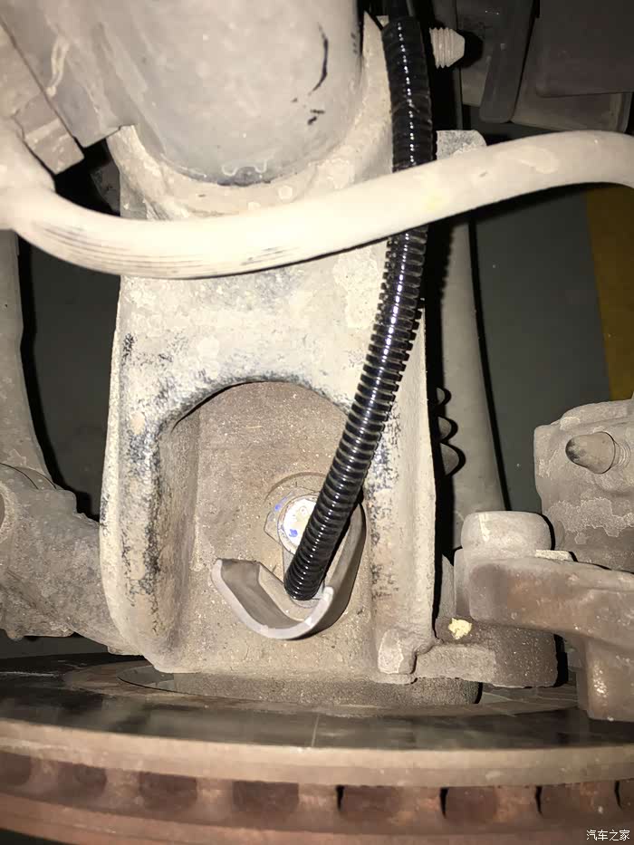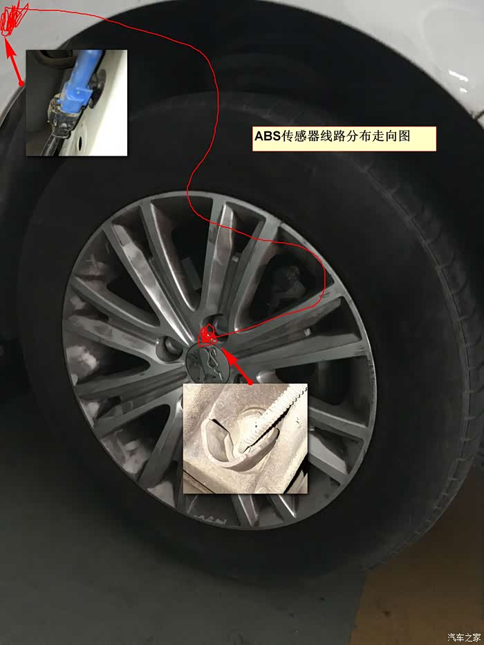 这个红色线条代表的线就是靠近刹车片的ABS传感器线束了
