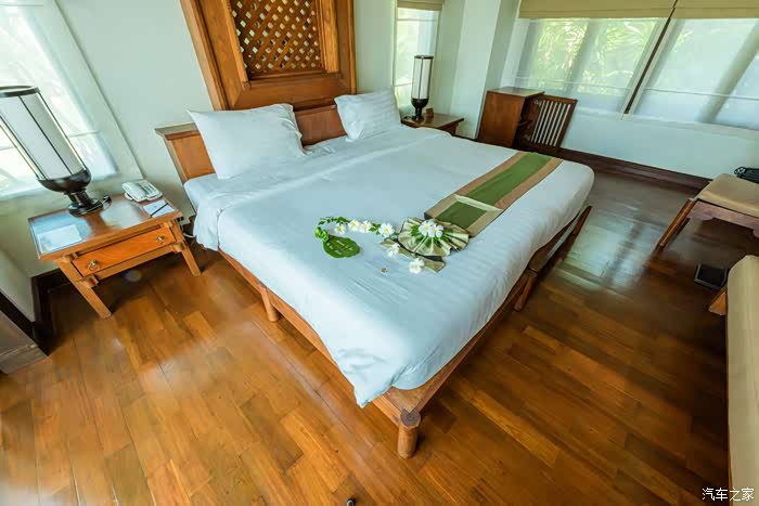 进入房间时,发现还特意布置了房间,大床上还有专门欢迎我入住的摆花。